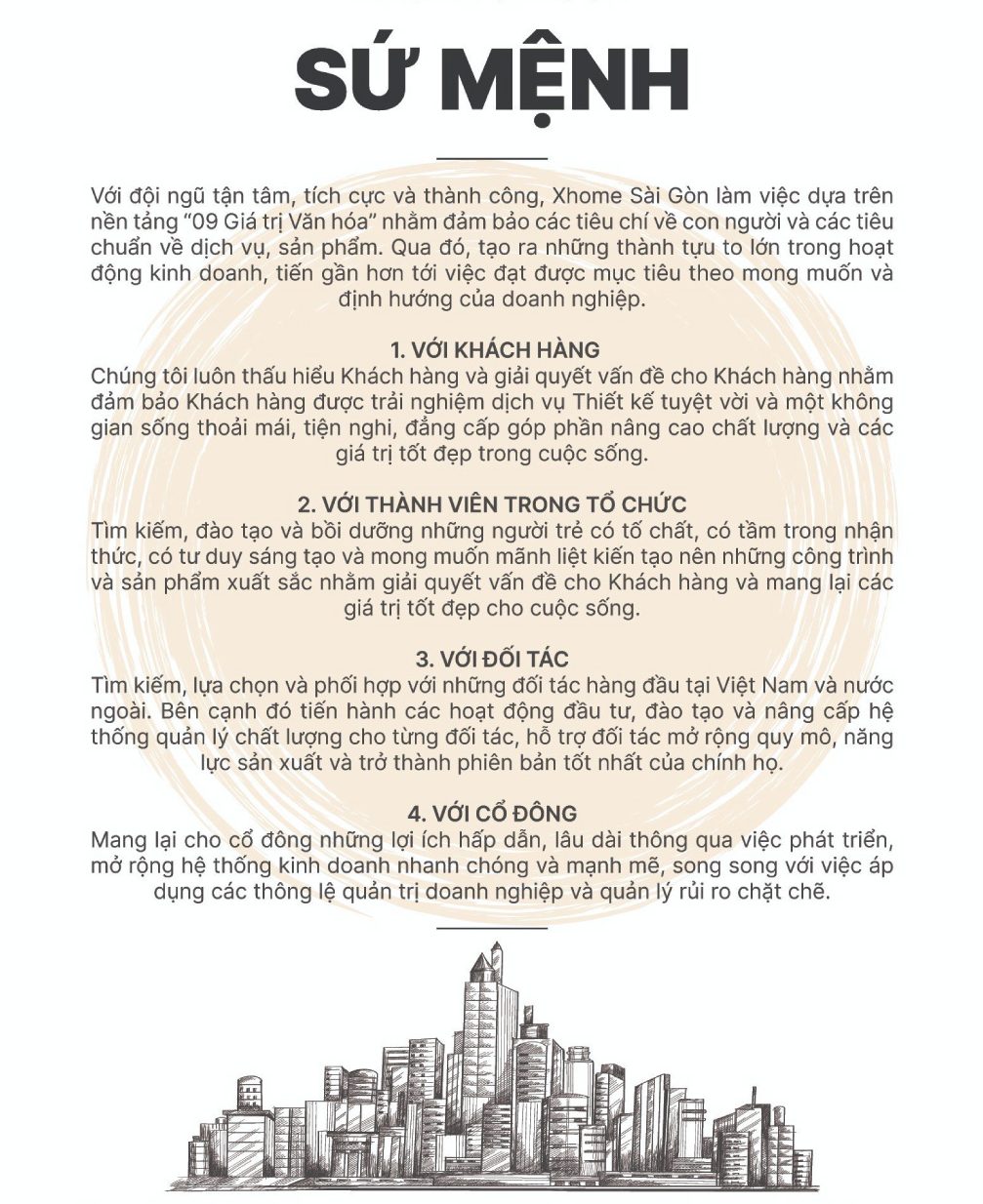 Chúng tôi là đội ngũ chuyên nghiệp hoạt động trong lĩnh vực xây dựng và nội thất, cam kết không ngừng hoàn thiện dịch vụ và nâng cao năng lực để mang đến cho Quý khách hàng những dự án đẳng cấp và một trải nghiệm khách hàng xuất sắc.